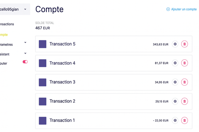 Informations sur le Compte - Solde Initial : 250 € - Solde Final : 874 €